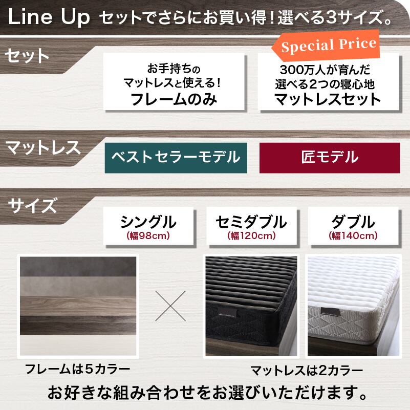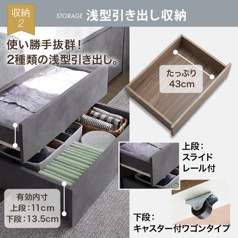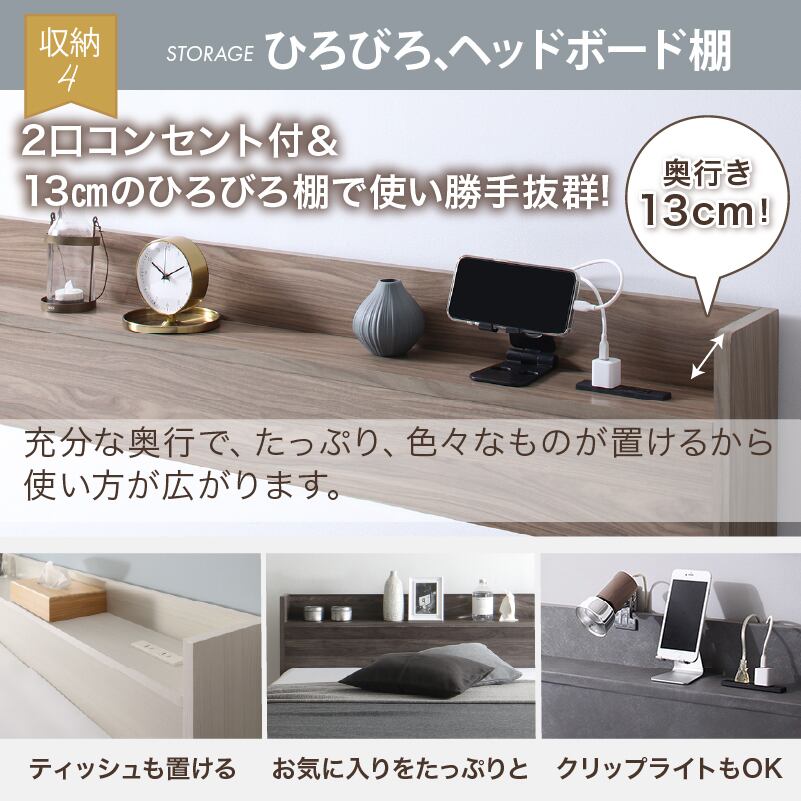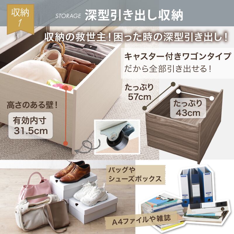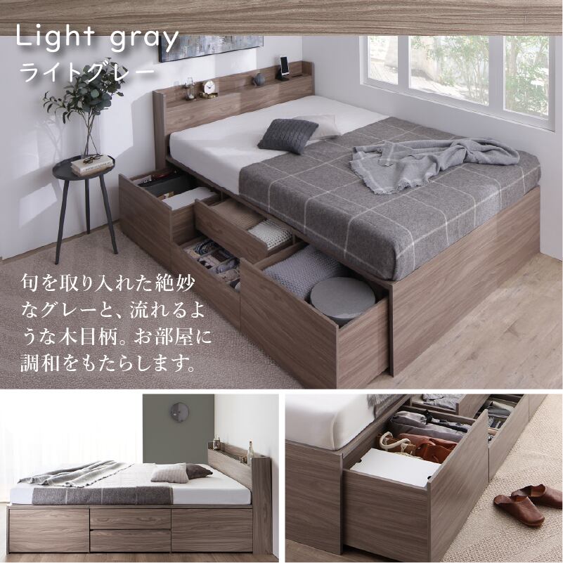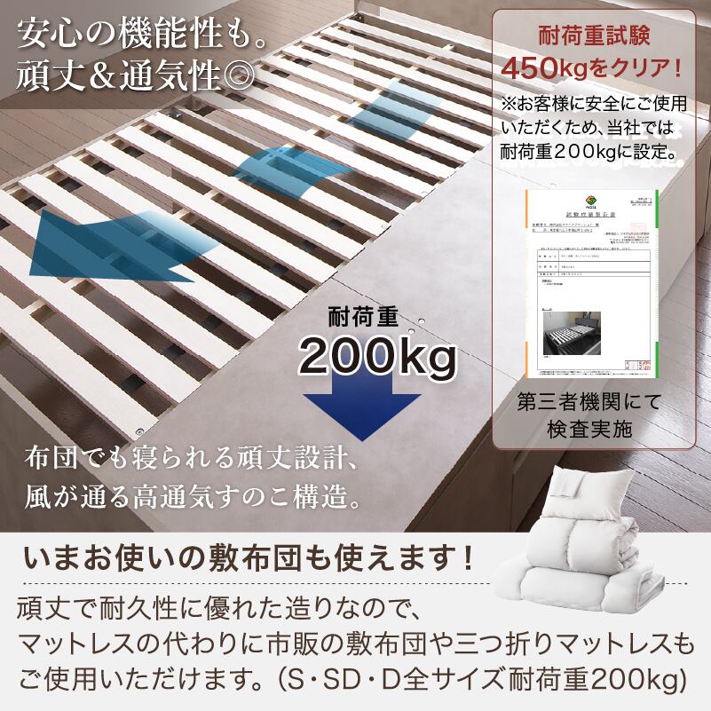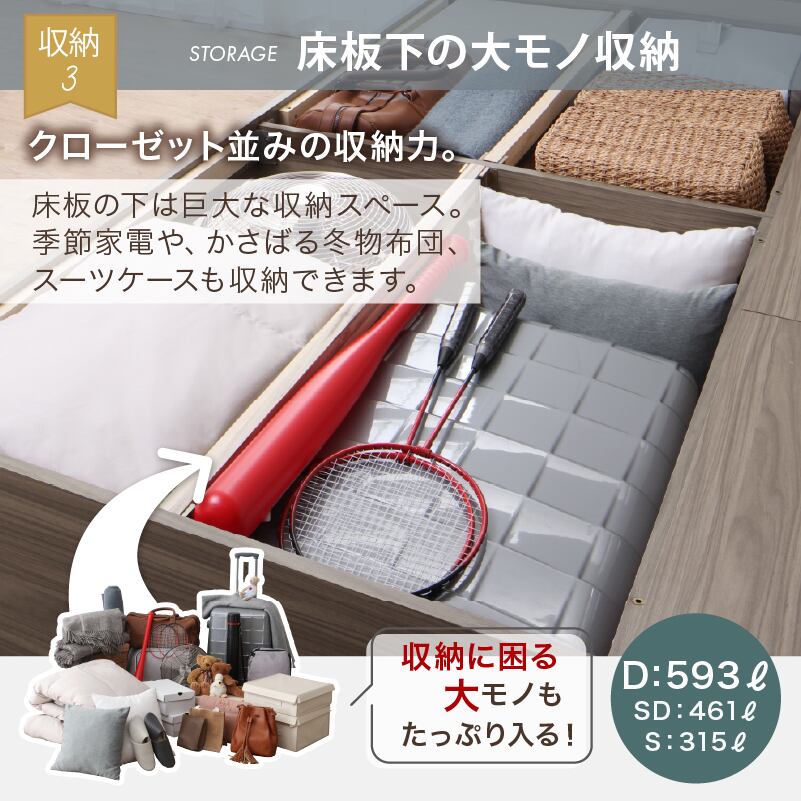 たっぷりしまえて、美しく整う タンス級の収納力×上質デザイン KASANE 5colors×3size これ一台でベッドも収納家具も 圧倒的収納力 コンセント2口 頑丈・敷布団OK S/SD/D