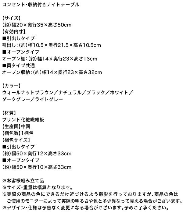 コンセント・収納付きナイトテーブル espita エスピタ オープンタイプ W20
