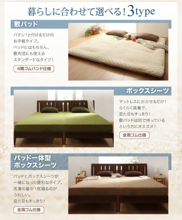 パッドとボックスシーツが一緒になった便利なタイプ。