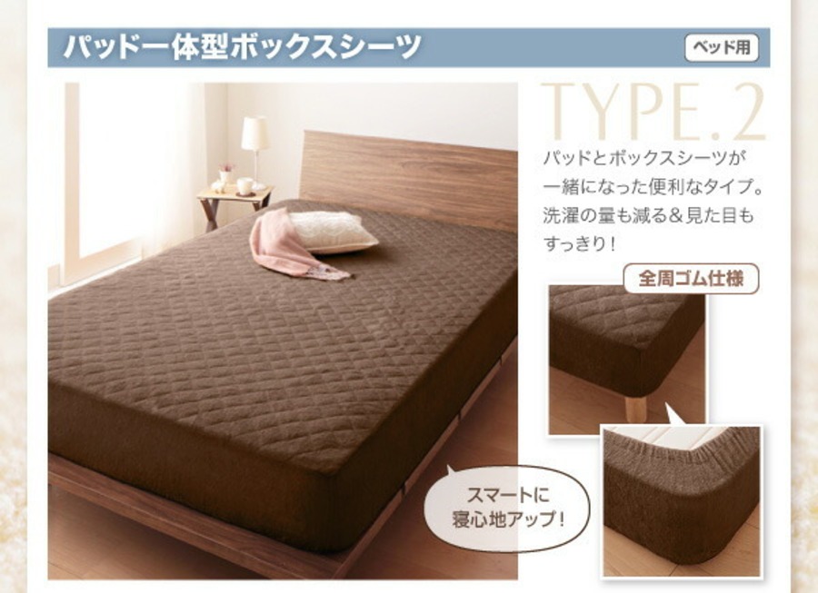 パッドとボックスシーツが一緒になった便利なタイプ。