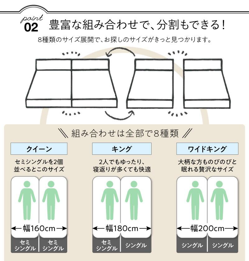 棚・コンセント付き連結ベッド/ラトゥース2 Lautus2 プレミアムボンネルコイルマットレス付き ワイドK220(S+SD)