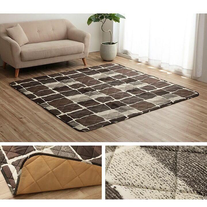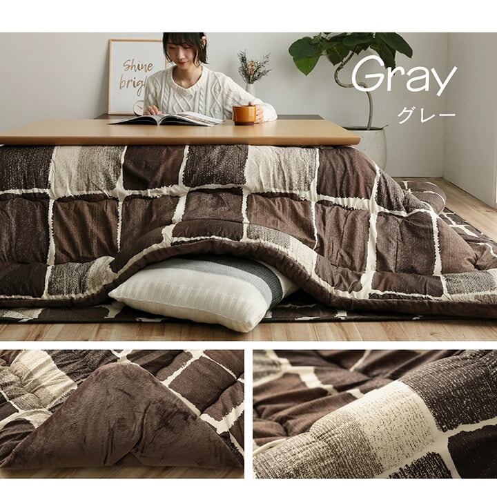 パッチワーク風のデザインをしたこたつ布団と敷き布団のセットです。国内でわた入れをしています。側地にはポリエステル素材を起毛させた柔らかい生地を使用しています。部分暖房のこたつは電気代もおトクです。