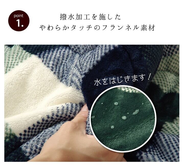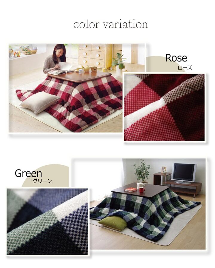 あたたかみのあるカラーと素材を使用したチェック柄のこたつ布団です。表地は肌触りの優しい柔らかなフランネルを使用しています。はっ水加工を施しているため、さっと拭き取っていただけます。薄手なので折りたたんでもかさばらず、コンパクトに収納できます。部分暖房のコタツは電気代もおトクです。