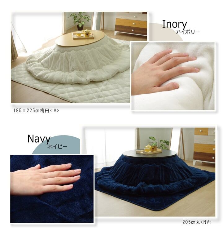 中わたに抗菌防臭加工を施した無地のこたつ布団です。側地には柔らかく、肌触りの良いフランネル生地を使用してます。毛足が短いので掃除機もかけやすく、毛足にゴミや埃が絡みにくいという特長もあります。両面使用可能なリバーシブルタイプです。また、表地の素材が同じで同色のキルトラグも別途取扱いがありますので、トータルでのコーディネートもおすすめです。こたつの特長として1.省エネルギー、こたつは必要なところだけを暖める省エネルギー暖房器具です。2.クリーン、こたつは二酸化炭素など有害物質を出さないのでクリーンです。3.団らんの場、家族や友達が一緒にくつろげる空間、心も体もポッカポカになります。※本商品は圧縮梱包でのお届けとなります。商品が届きましたらお早めに開梱して頂き、2~3時間日陰干しをして頂くと復元が早まります。