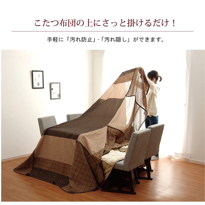 高脚用こたつの上掛けです。べとつかずサラッとした肌触りのしじらを使用しています。洗濯機で洗えるので清潔にご使用できます。※本商品はファスナータイプではありません。