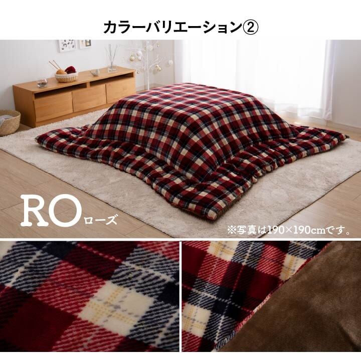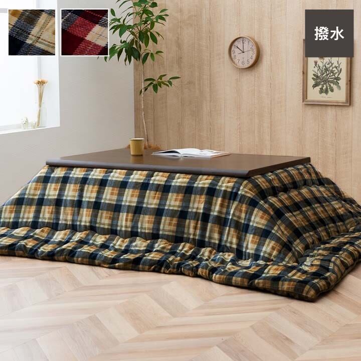 チェック柄で,シンプルな部屋に合わせやすい人気の高いデザインです。表生地は撥水加工がされているので,汚れてもお手入れが簡単です。中綿に東レマッシュロン綿を使用,とても軽量な上に,ふんわりと弾力性に富んでいます。側地には柔らかく,肌触りの良いフランネル生地を使用してます。毛足が短いので掃除機もかけやすく,毛足にゴミや埃が絡みにくいです。国内の生産者が丁寧に綿入れ加工をしています。