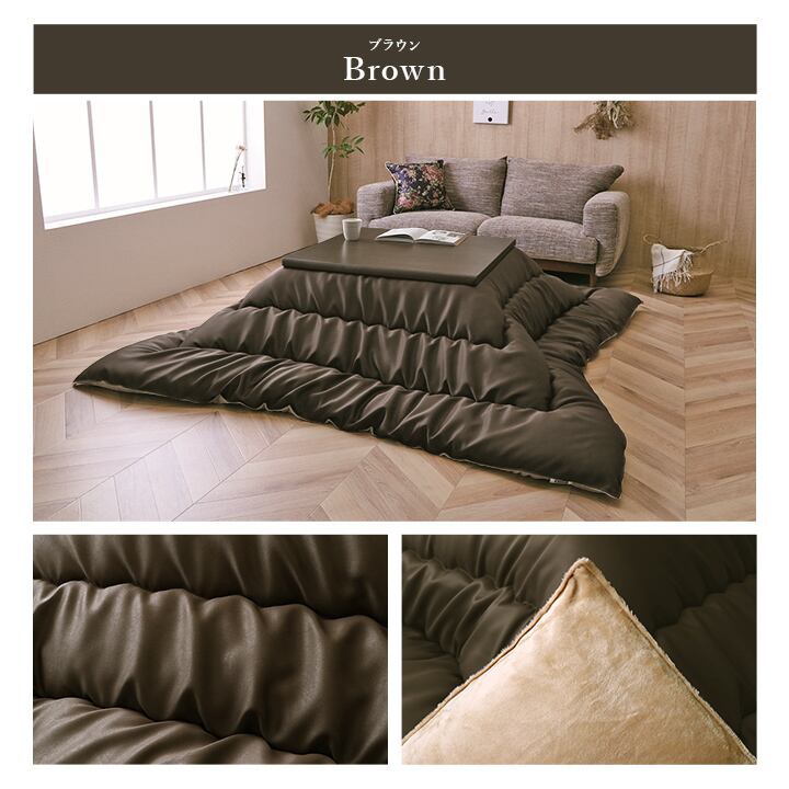 国産プリントでやさしいレザー調の生地を使用したこたつ布団。