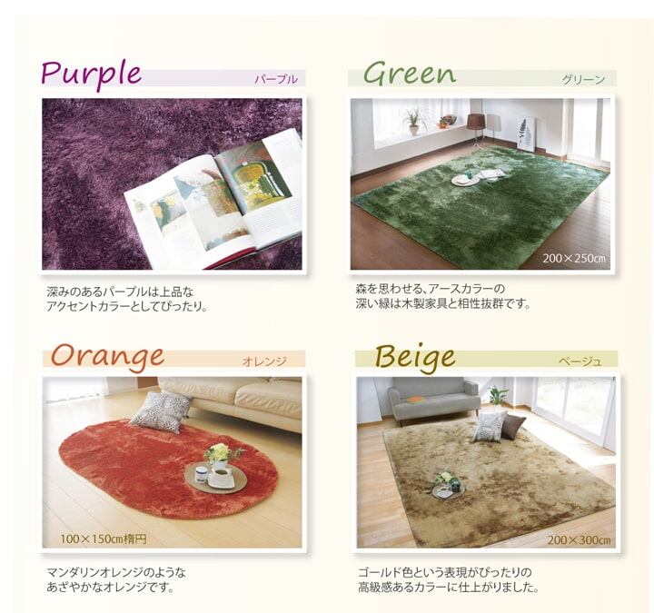 シャギー調の毛足は約18mmでふかふかとした感触とさらさらとした肌触りがとても気持ちいい商品です。