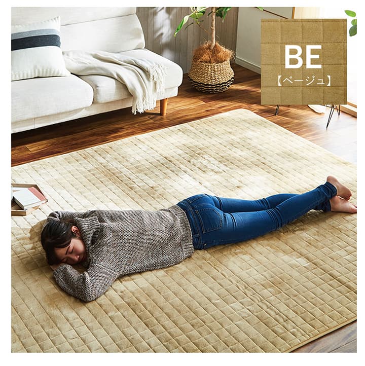 表地は保温性のあるフランネル生地で,ずっと触っていたくなるようなやわらかな肌触りです。中材にアルミシート・ポリエチレンシートを使用することで蓄熱・断熱機能があるため,冬の寒い日でも床からの底冷えを軽減します。無地でカラーバリエーションも豊富なため,どのようなお部屋にも合います。