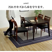 汚れや傷から大事な床を守る、撥水加工付きのダイニングラグ。丈夫でへたりにくいナイロン素材を使用しております。