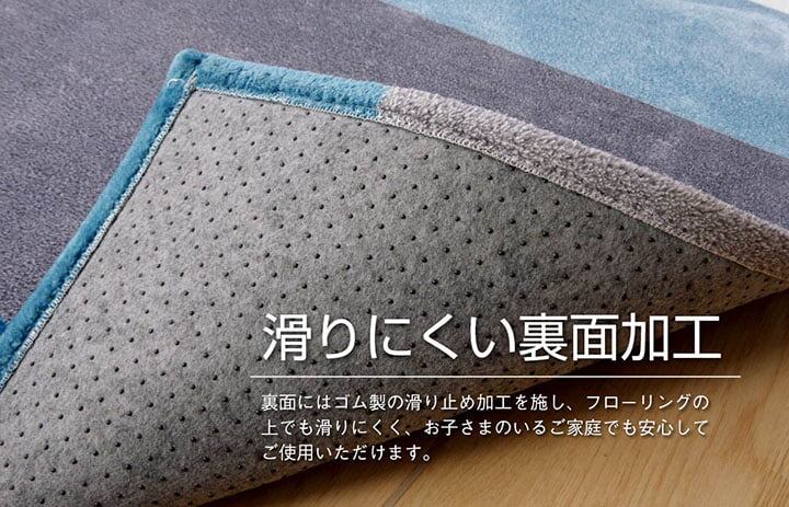 表地にはフランネルと呼ばれる、非常にやわらかいやさしい肌触りの生地を使用しています。電気カーペットカバーとしても使用できます。フローリングを傷つけにくいよう裏には不織布を貼っています。滑り止め付き。ホワイトのアクセントがお部屋にワンポイント添えます。