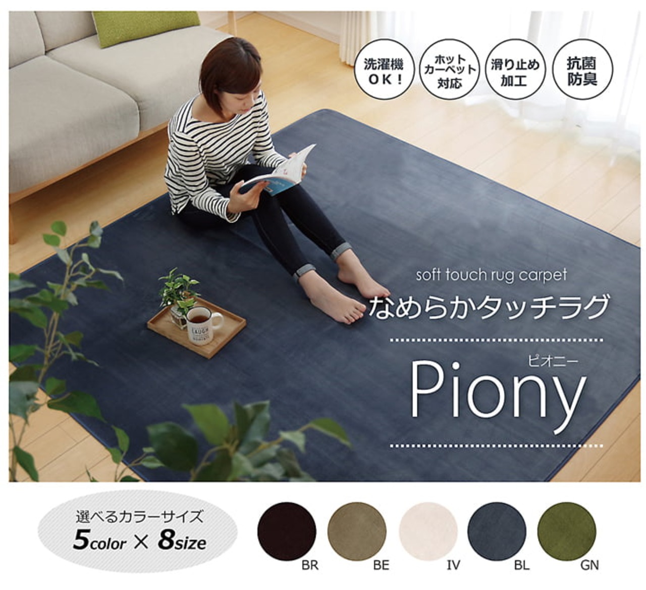 生地に抗菌・防臭加工を施した、ラグカーペットです。多色展開ですので、お部屋に合わせてお好きなカラーをお選び下さい。表地にはフランネルと呼ばれる、しっとりとして非常に柔らかい生地を使用しています。軽量で持ち運びが楽々です。薄手で小さく折りたたむことができますので、収納時にも場所を取りません。フローリングを傷つけにくいよう、裏には不織布を貼っています。ご家庭の洗濯機で洗えるウォッシャブル仕様ですので、清潔にご使用頂けます。電気カーペットカバーとしてもご使用頂けます。季節を選ばすオールシーズンご使用頂けます。多サイズ展開で、ワンルームから子ども部屋、リビング・ダイニング、ベッドサイド、ソファ前にも。いろいろなシーンに合わせてお選び下さい。