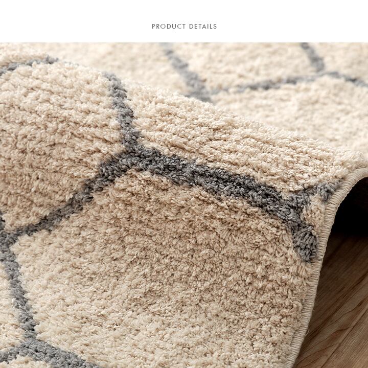 触れるとふわっとやわらかく心地よいラグ。モダンな幾何学デザインがお部屋の上品なアクセントに。