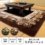 掘りごたつ対応で、くり抜きタイプのカーペットです。日本では古くから親しまれてきた掘りごたつ。その特殊な形状から、敷物が敷けないのが難点。そんなお悩みを解決してくれる商品です。