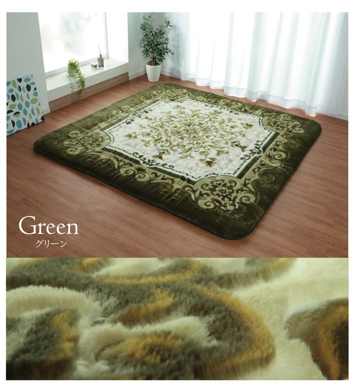 カービングを施した、立体感のある商品です。洋室にも和室にもご使用いただけます。中材にはクッション性にこだわった国産の固綿40mmを使用しています。十分な弾力性があるのでフローリングでのご使用にも最適です。