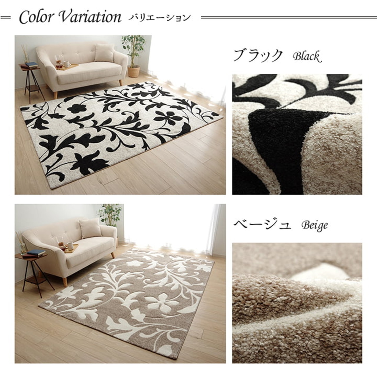 トルコ製のウィルトン織りのカーペットです。本商品の『繊維の密度を表すノット数』は128,000です。ポリプロピレン素材をパイル部分に使用しております。そのため繊維が細かくやわらかいタッチ感がある商品です。この商品はカービング加工をしており立体感のあるオシャレなラグです。ポリプロピレンは繊維の中でも軽い素材です。また、汚れが付着しにくく遊び毛や毛玉が非常に出にくいという特徴もあります。ホットカーペットカバーや床暖房にも対応しております。年間お使い頂けるカーペットです。