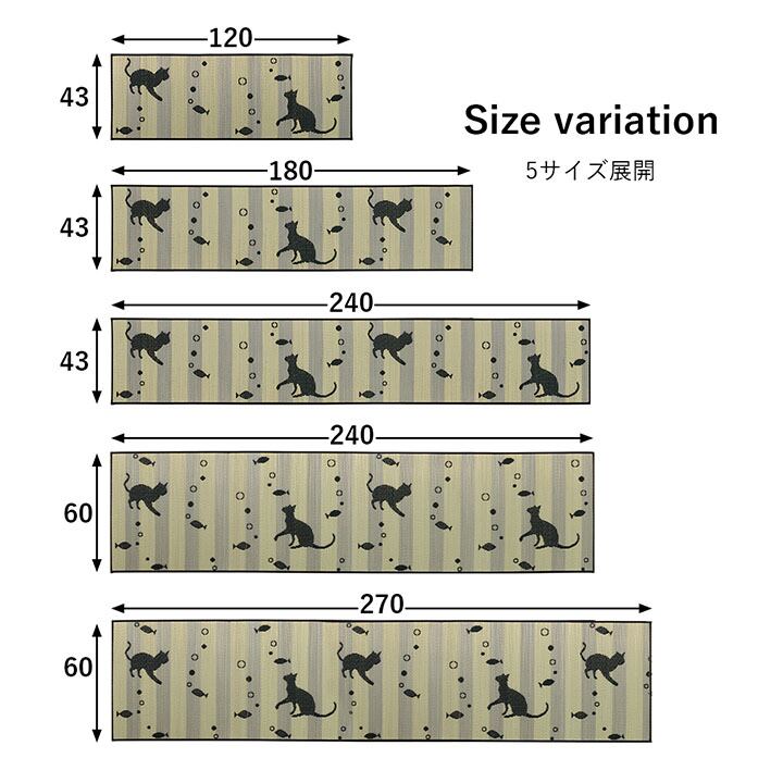 国産のい草の素材でネコ柄のキッチンマットは珍しい商品となっています。