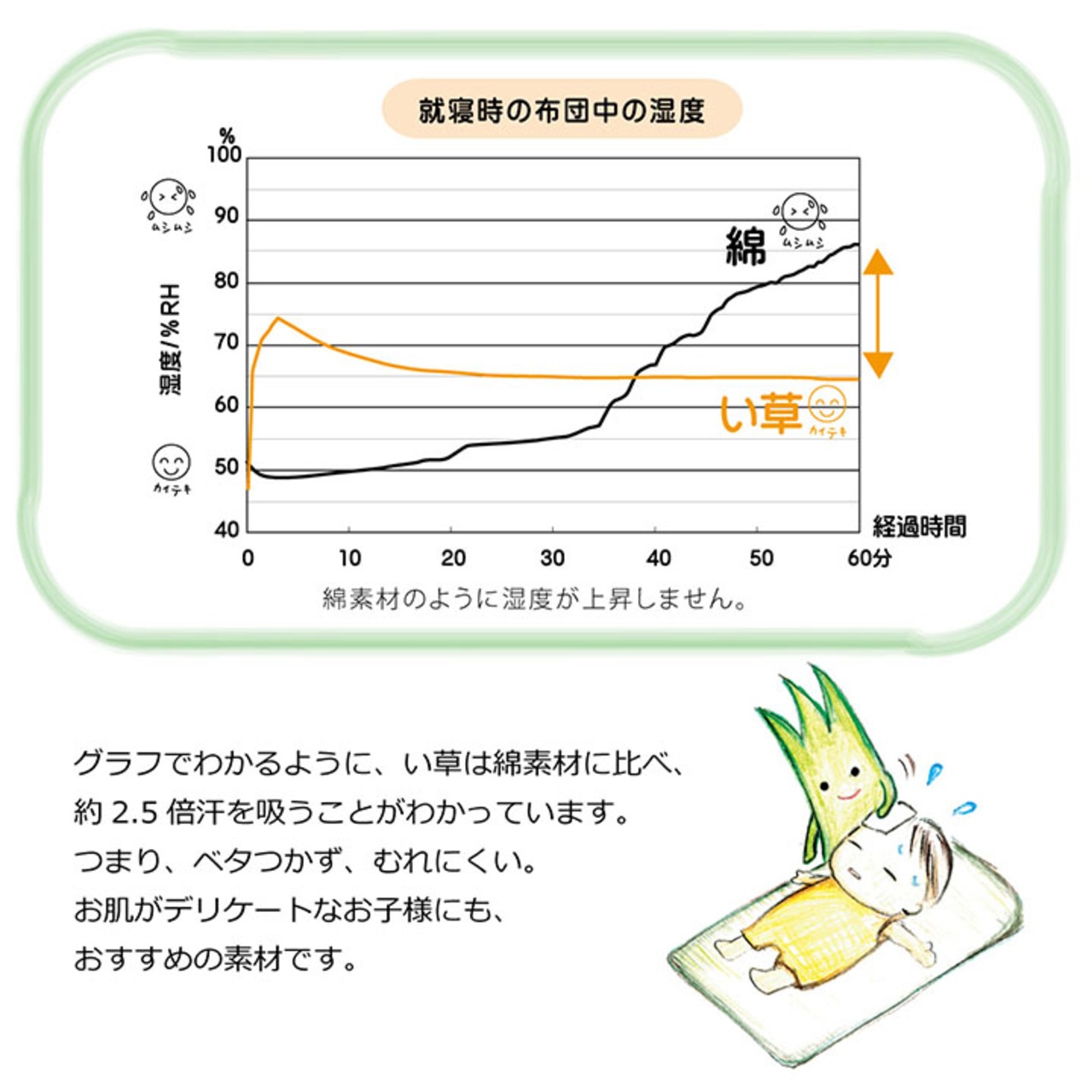 い草には汗などのジメジメ感を軽減する吸湿性と抗菌防臭などの効果があります。