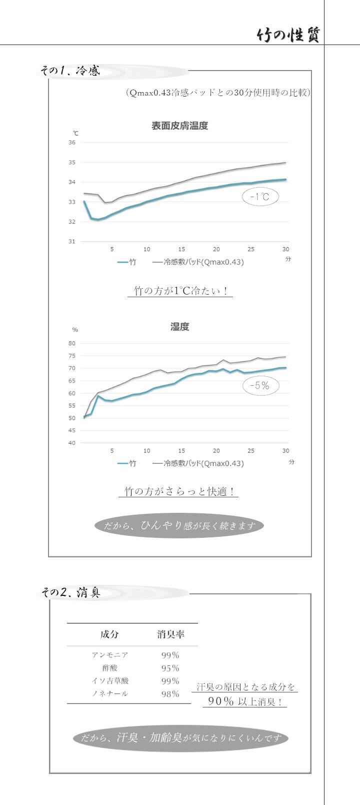 髪の毛や体毛がひっかかりにくいよう、フレームに柔らかいPPを使用した竹のシーツです。フレームが柔らかいので、どこからでも折りたたむことができ、コンパクトに収納できます。また竹駒のサイズは28mm×15mmと一般的なものよりひとまわり小さくしていますので、より体にフィットします。素材は麻雀竹の産地である福建省で育った天然の竹を使用しています。猛宗竹のひんやり感のある表面部分を使用しています。竹の表皮は、熱を吸収する機能に優れています。竹の持つこの特長が、ひんやりとした肌さわりをもたらします。綿素材と比較して体感温度が下がり、寝苦しい夜を快適にサポートしてくれます。マットレスなどの上に敷いてもぴったりとフィットして竹の硬さを感じません。