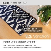 システムキッチンにも合いやすいサイズのキッチンマットです。通常タイプと幅広タイプの2種類をご用意しました。目付を上げることで弾力のある優しい踏み心地に仕上げました。コンパクトにも畳める商品なので収納も簡単です。汚れた際は洗濯機でも洗えるため清潔にご使用いただけます。(洗濯時はネットを使用してください)シンプルな幾何柄が特徴の商品です。