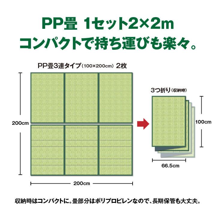 PP畳は3つ折り可能でコンパクトに収納でき、間仕切り部も軽量で持ち運びやすいです。
