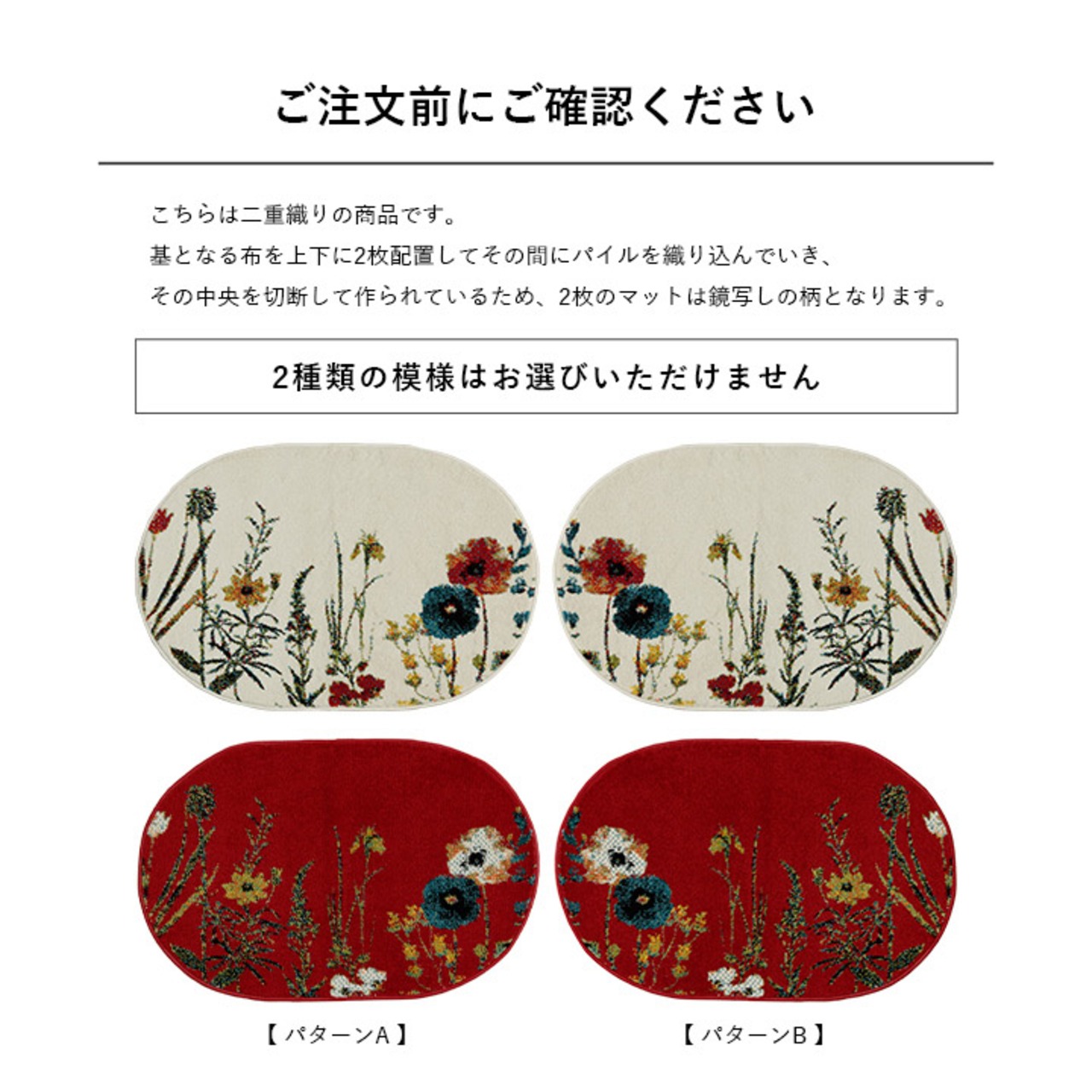 ウィルトン玄関マット ボタニカル 60×90cm楕円