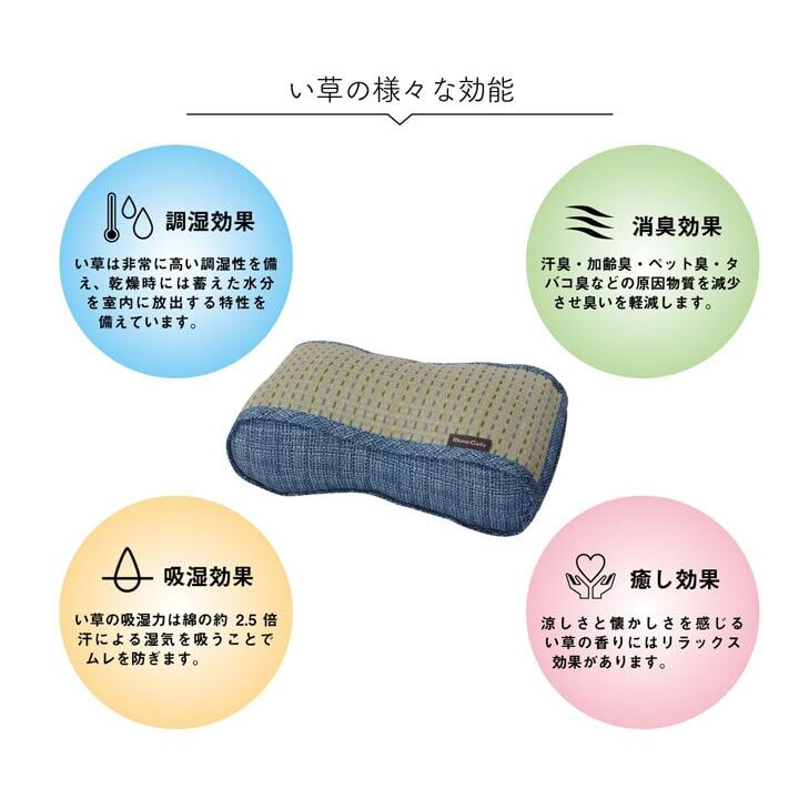 *抗菌加工はい草生地の表面に施されています。すべてのカビや菌に効果があるわけではありません。高温・多湿の状態で放置すると、カビや細菌が発生しやすくなります。すっきりとしたドット柄のおしゃれない草のフィットクッション。デスクワークやリビングでのリラックスタイムの腰当てや背あてとして使用したり、リビングでのごろ寝に使用したりと使い方いろいろな便利クッションです。中材は低反発ウレタンを使用。もっちりとした感触が特徴です。