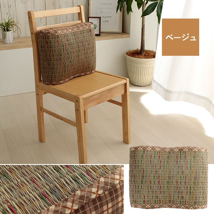 チェック柄のおしゃれない草のフィットクッション。腰当てやお昼寝用の枕、足枕など、いろんな使い方が出来ます。