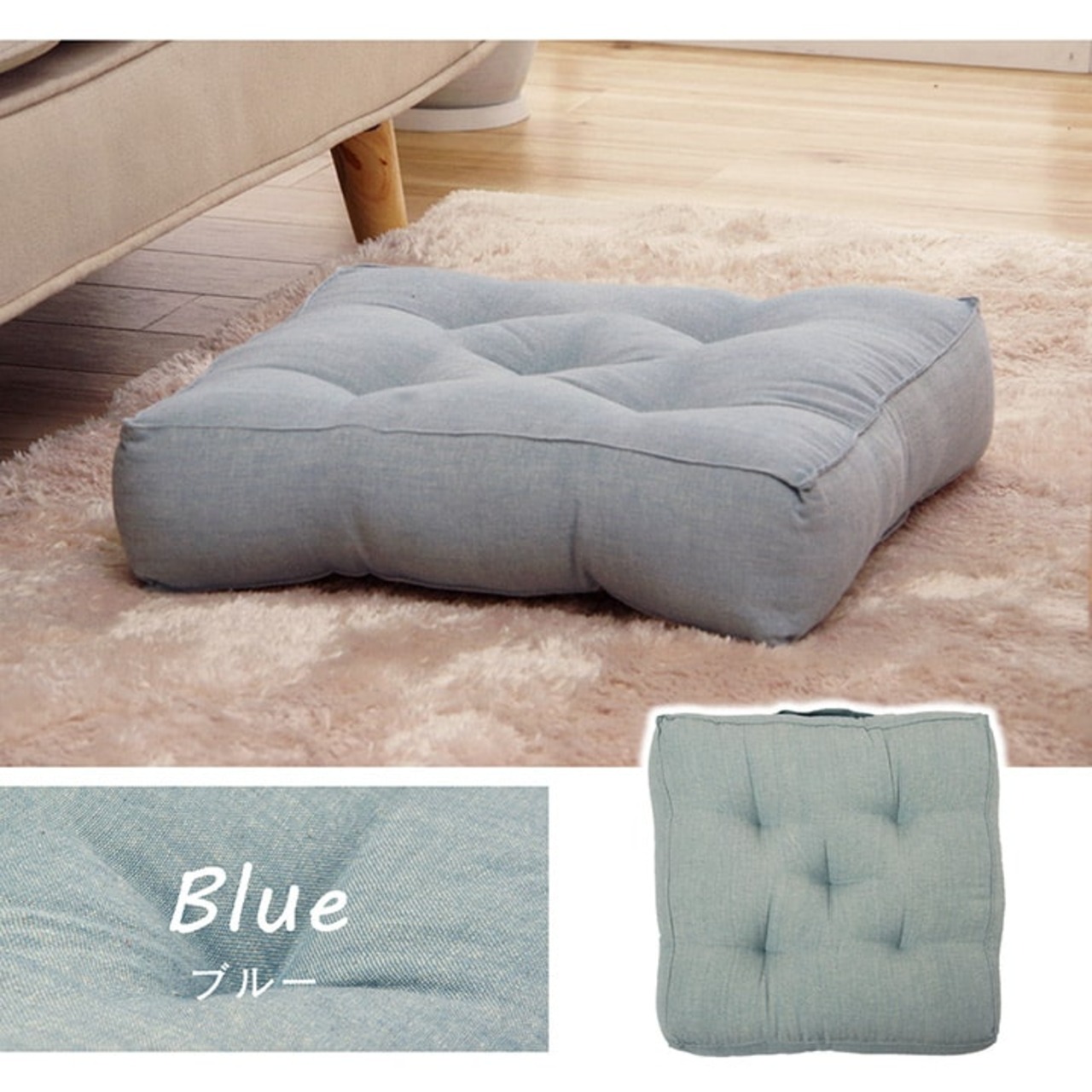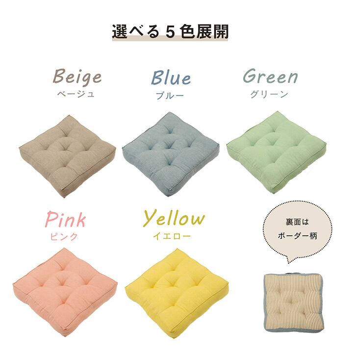 インド綿100%のオーガニックコットンを使用し、ざっくりとした肌触りが特徴です。シンプルで飽きの来ないデザインです。持ち手付きなので持ち運びにも便利です。厚みがあるため、座布団代わりに活躍します。季節を問わずご使用いただけます。