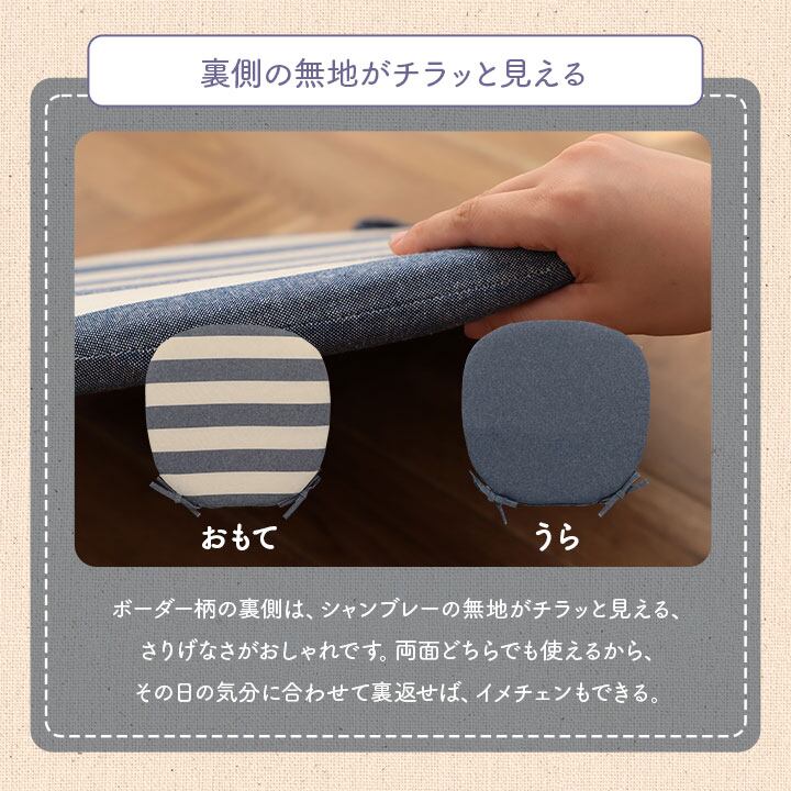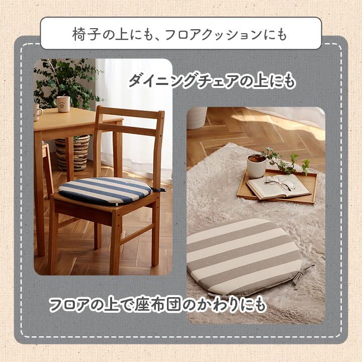シンプルで飽きの来ないデザインで、ダイニングチェア、車のシートなど様々なシーンでご使用いただけるバテイクッションです。