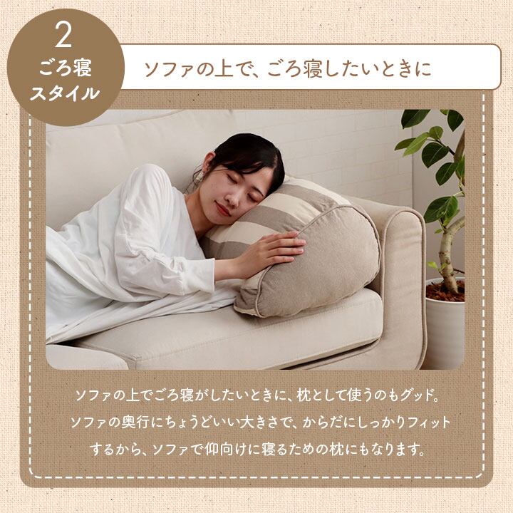 シンプルで飽きの来ないデザインで、ソファの腰当としてや、座布団、枕代わり、読書に等、それぞれのライフスタイルにあった用途でご使用いただけるよりかかりクッションです。