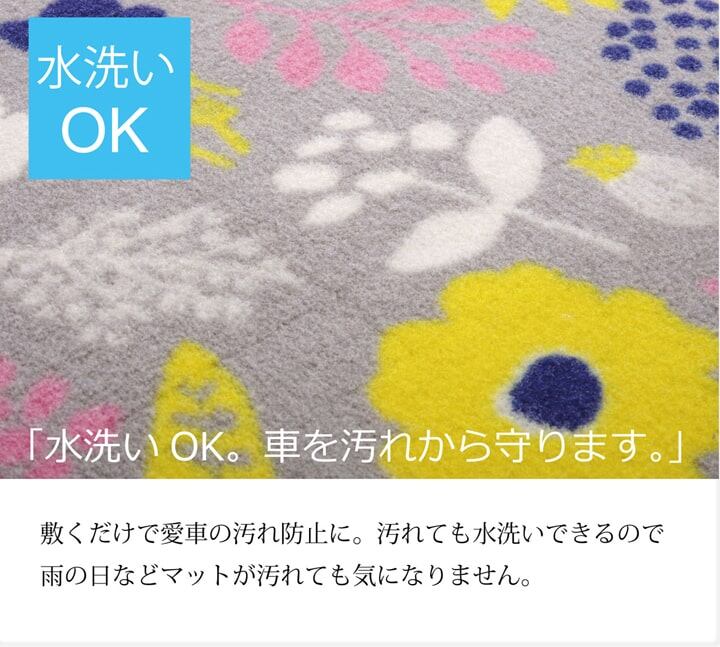 北欧テイストを取り入れたフロント(運転席・助手席用)足元用マットです。北欧の森をテーマに花やリーフ、森の動物たちを素朴で味のあるスタンプタッチで表現しました。明るいカラーとデザインで車内を明るく楽しく演出します。表地には摩耗に非常に強く、耐久性のあるナイロンを使用しています。ナイロンには汚れが落ちやすく、速乾性に優れるという特長もあります。汚れても水洗い可能です。裏面にはサーモプラスチックラバーと呼ばれる素材を使用しています。滑りにくく、耐久性が高くボロボロになりくいのが特長です。※お車のペダルの形状をご確認下さい。アクセルペダルがオルガン式(床からペダルが支えられているタイプ)のお車には使用できません。