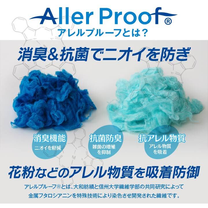PM2.5、かぜ、花粉、ハウスダスト対応の高機能不織布フィルターを使用したアレルプルーフマスク。消臭効率90%以上で高い消臭性もあります。1枚1枚個別包装してあるため、持ち運びにも便利です。