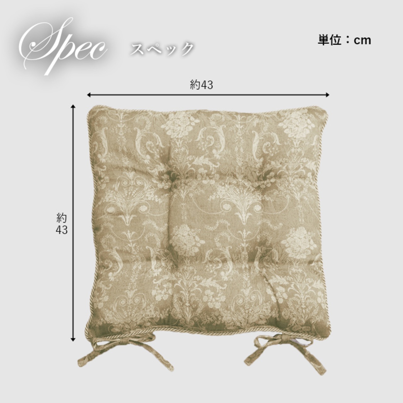 お部屋をぱっと華やかにするエレガントな柄のシートクッションです。