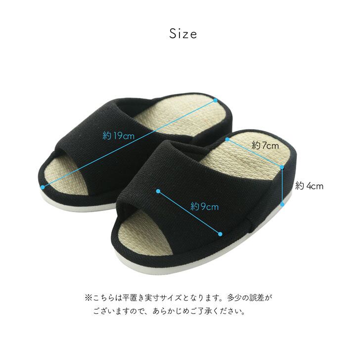 つま先がオープントゥタイプのスリッパです。インソール部分がい草なので、さらっとした履き心地。また、い草の消臭効果で気になる臭いも軽減してくれます。シンプルなデザインなのでご自宅でもオフィスでもご使用頂けます。